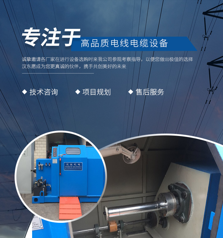 常州漢東機(jī)械始創(chuàng)于2006年,是集電線電纜機(jī)械設(shè)計(jì)、開發(fā)、制造、安裝、調(diào)試為一體化的高科技企業(yè)。本公司自開業(yè)以來,積極引進(jìn)日本,歐美等國外電線電纜設(shè)備之先進(jìn)技術(shù),先后成功推出了達(dá)到行業(yè)先進(jìn)水平的電線電纜設(shè)備,主要產(chǎn)品有擠出、繞包、束線、成纜等電線電纜固定設(shè)備。在提供系統(tǒng)設(shè)備的同時,還向客戶提供售前技術(shù)咨詢、項(xiàng)目規(guī)劃、以及售后服務(wù)。我公司本著“以人為本、科技先導(dǎo)、用戶為上”的宗旨,為客戶提供牢靠的產(chǎn)品與省心的服務(wù)。漢東愿成為您更真誠的伙伴,攜手共創(chuàng)美好的未來!
